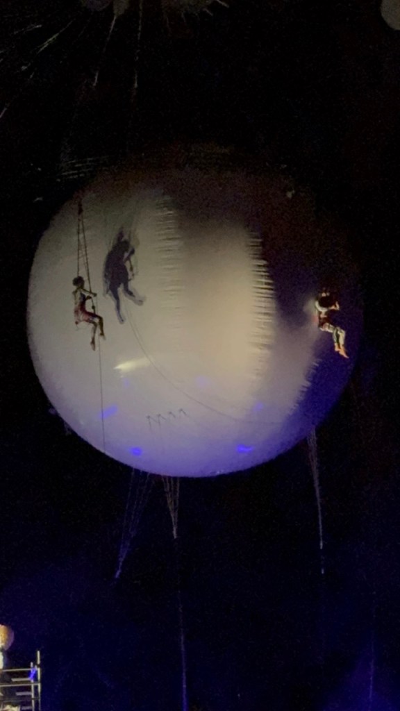 La compagnie Deux ex machina présente « Le Grand Mire », un spectacle onirique et pluridisciplinaire. À travers une mise en scène mêlant numéros aériens, comédie et mapping vidéo, la pièce pose un regard à la fois critique et poétique sur l’humanité, présentée comme une émission de télévision intergalactique.