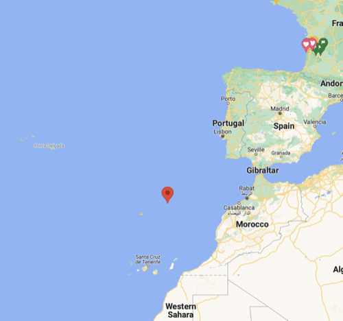 La route choisie passera entre Madère et Las Palmas. ![]()