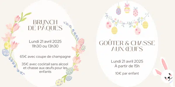 Au programme : un brunch de saison en deux services, au restaurant du Domaine (65 € par adulte avec coupe de champagne / 35 € par enfant), suivi d’une chasse aux œufs dans les jardins et d’un goûter pour les enfants.