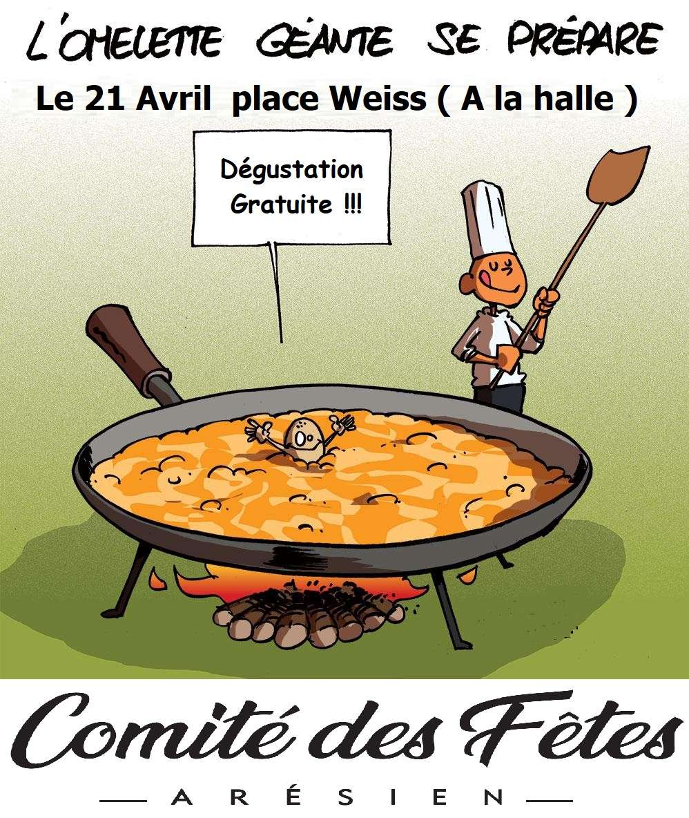 Lundi de Pâques le Comité Des Fêtes Arésien vous propose l’omelette pascale » dégustation gratuite »