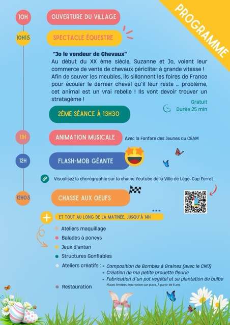 Lien vers la chorégraphie disponible sur Youtube ville de lege-capferret - 12H15 : Chasse aux oeufs